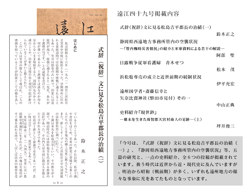 講師 小池善之 氏(静岡県近代史研究会会員) 13:30~15:30 費用1500円 定員40名 会場:賀茂真淵記念館 ① 6/24(水) ② 9/ 9(水) ③11/18(水) |